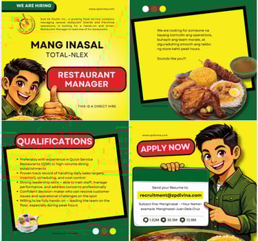 b. Email your CV to recruitment@zpdivina.com, Subject Line: Name - Role you are applying for. ex. Juan dela Cruz - Social Media Manager